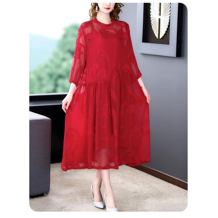 ワンピース レディース 40代 赤 ワンピース キレイめ 膝丈ワンピース 春夏 長袖ワンピース リオン シフォンワンピース オシャレ 上品 着痩せ 新作 Ll Moulin直販 ヤフーショップ 通販 Yahoo ショッピング
